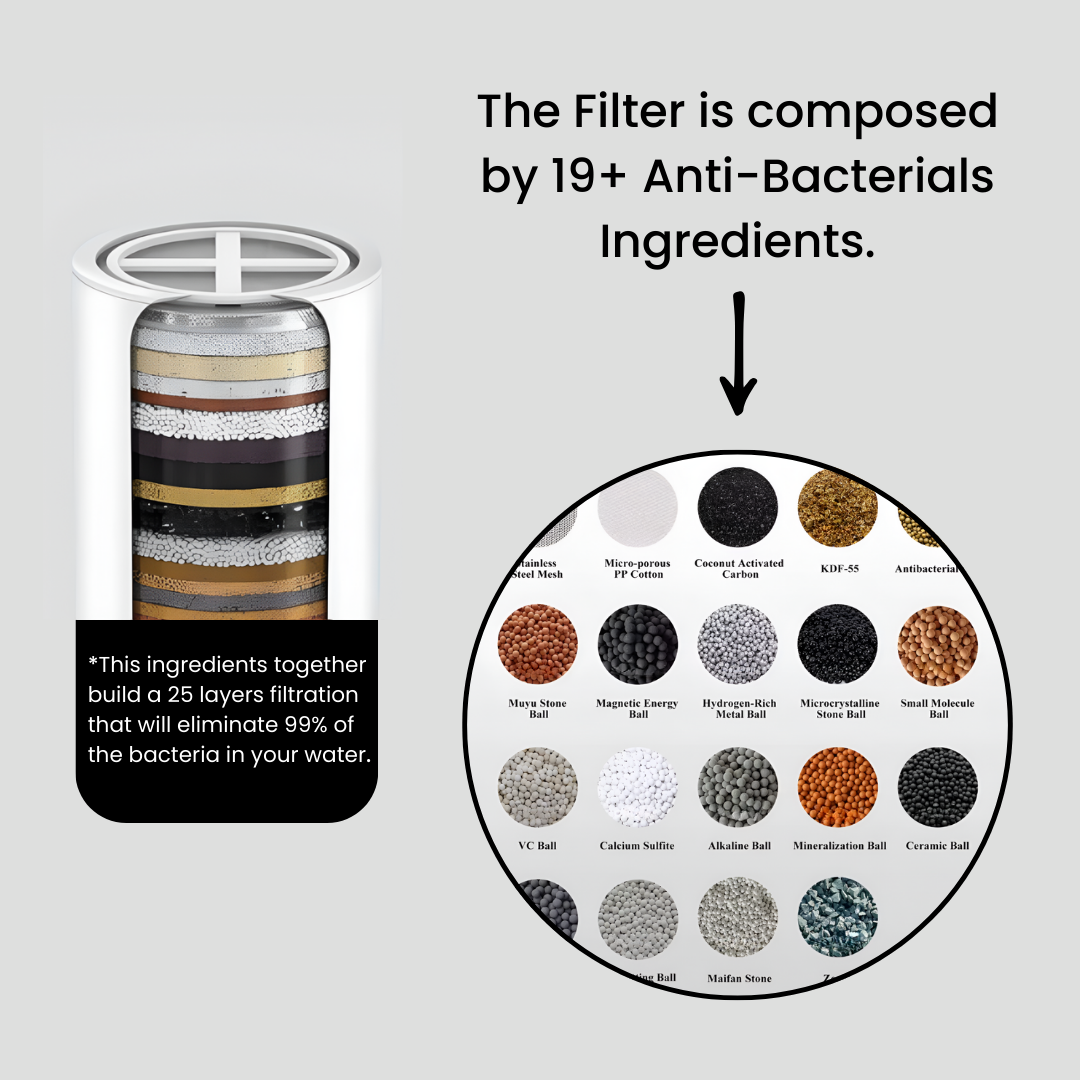 Our filter uses advanced filtration technology to reduce chlorine, heavy metals, and other impurities from your tap water, leaving it cleaner and gentler on your skin and hair.